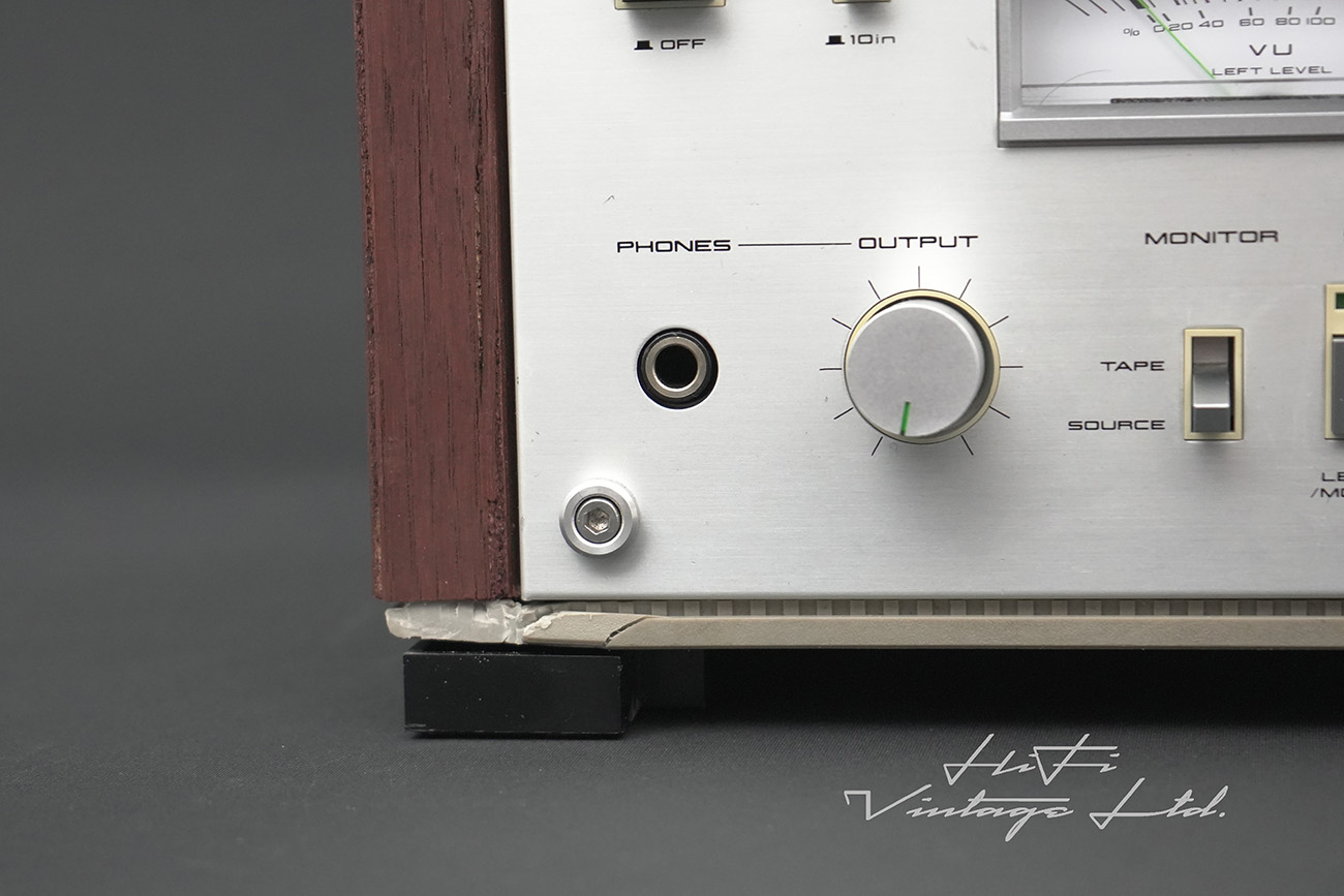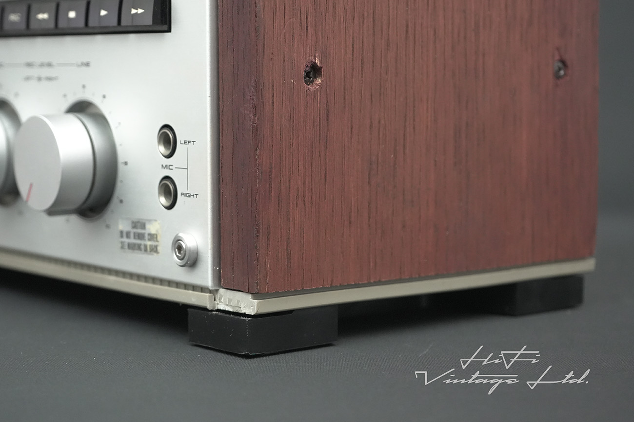 Has minor scratches and marks of use. Has scratches on the front panel, below the left reel hub. Has dents on the bottom corner.